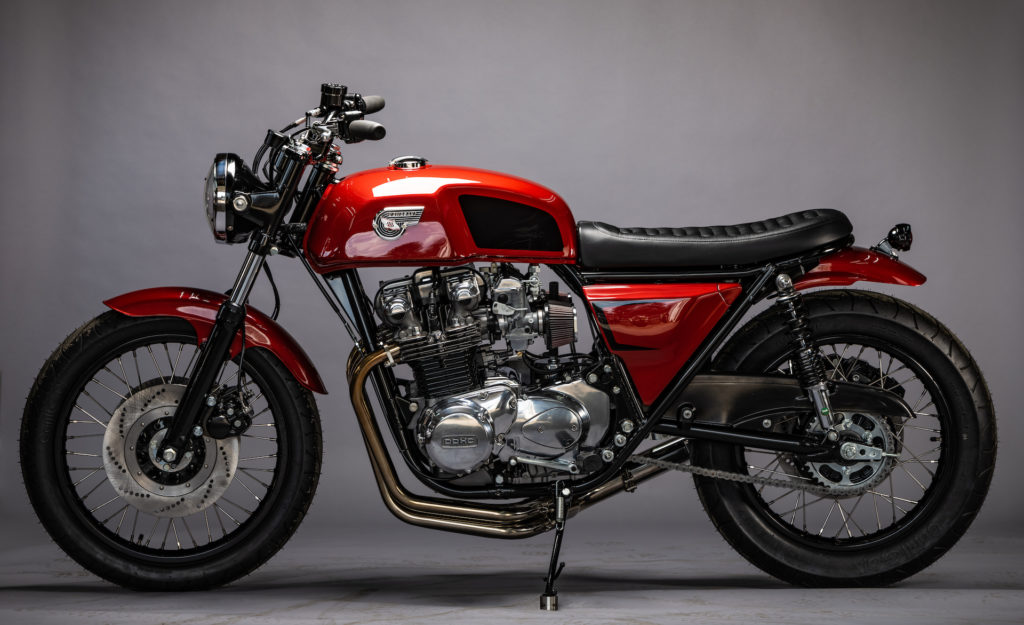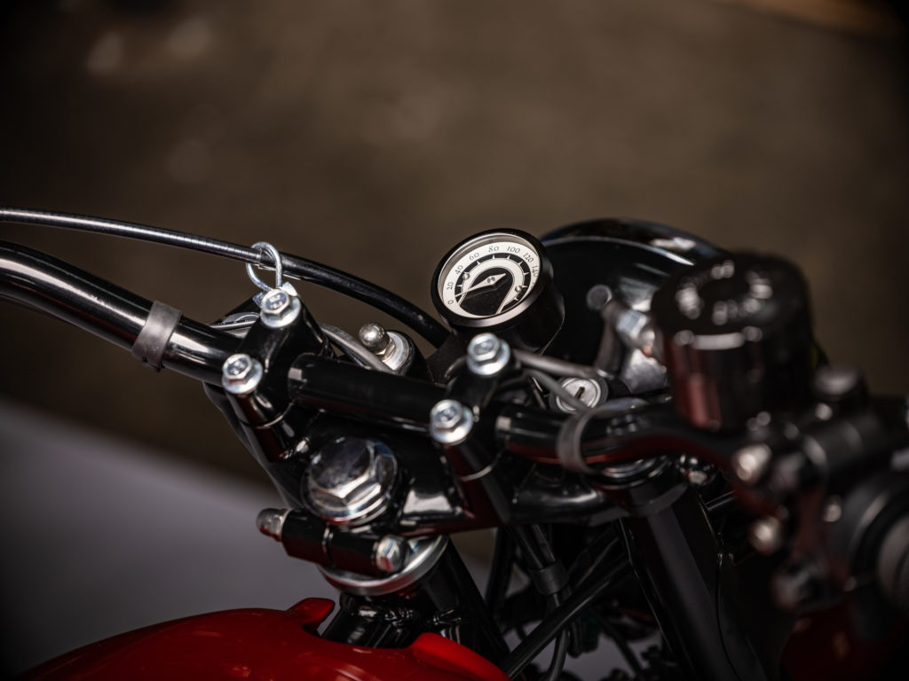 The fit and finish on this Kawasaki is extraordinary. The wheels received new stainless-steel spokes and a set fresh set of Conti GO tires were wrapped around the black rims. The classic MotoGadget mini speedo looks the part and a new wiring harness made all the electrics work as designed. Biltwel grips and some aftermarket switches cleaned up the bars.