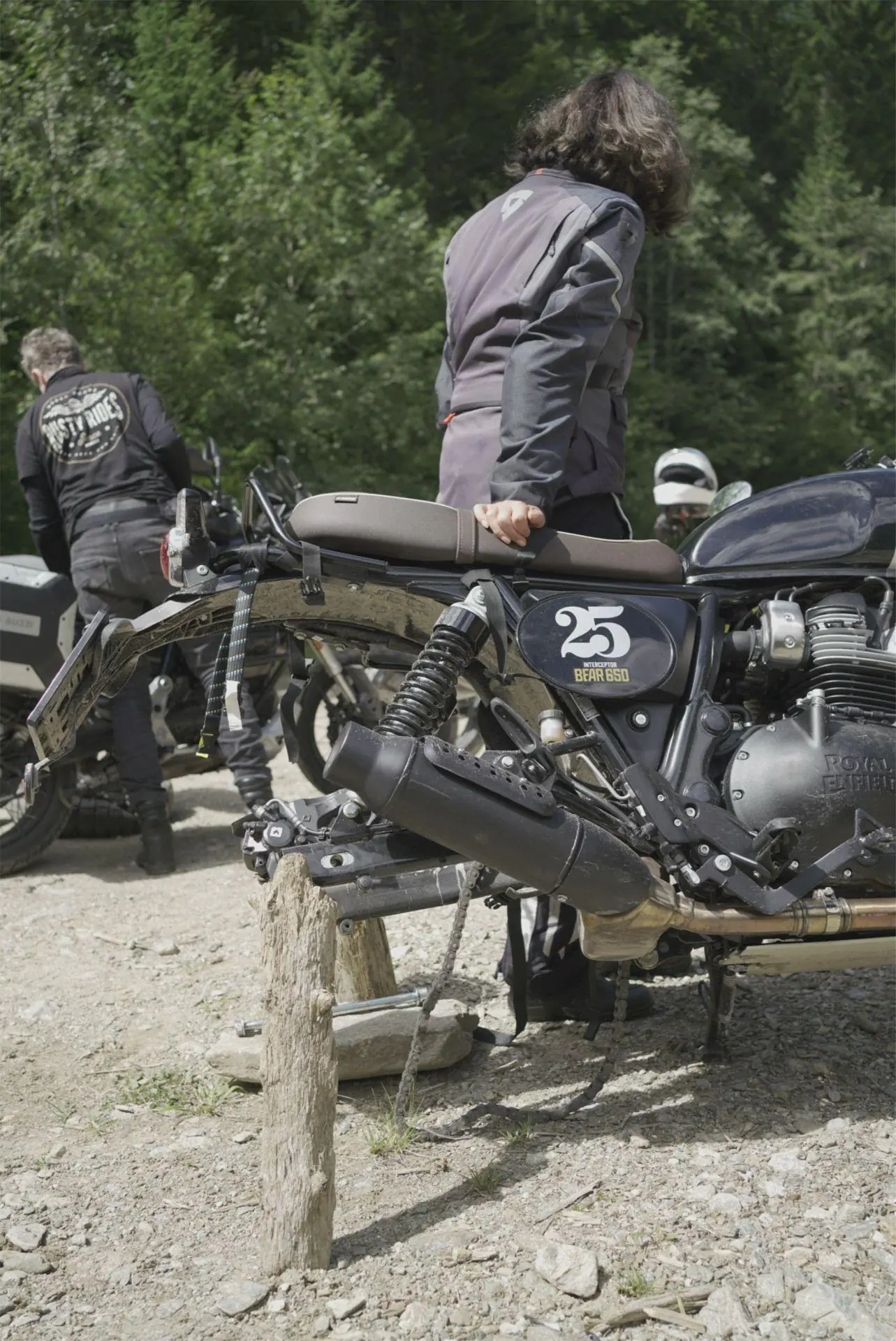 Le premier jour, j'ai parcouru 500 km, dont 350 sur autoroute et 149 sur routes secondaires. Le dernier kilomètre ? Du gravier, en montée, jusqu'à notre chalet. Et le Bear fait tout. Le guidon et les repose-pieds plus larges (avec inserts en caoutchouc amovibles) assurent la stabilité lorsque la roue avant de 19 pouces danse sur les rochers, et une maniabilité aisée à 130 km/h sur autoroute. La puissance est délivrée avec fluidité et fiabilité, et le passage des six vitesses est fluide et simple. À 4000 1000 tr/min, les pièces du bicylindre parallèle vibrent à une fréquence idéale et le guidon est parfaitement silencieux. Avec la position de conduite droite et la selle légèrement plus haute (un accessoire officiel RE), je pouvais faire ça toute la journée. Et c'est ce que j'ai fait ! Le week-end dernier, je suis allé en Bulgarie pour assister au Traditional Fuel Fest organisé par le Cafe Racer Club Bulgaria, ajoutant ainsi 185 6 km supplémentaires sur l'autoroute goudronnée à deux voies. Avec mon mètre quatre-vingt-cinq, quelques centimètres de plus auraient soulagé mes genoux lors de ces longues journées, mais honnêtement, combien de fois restez-vous assis plus de 8 heures ?