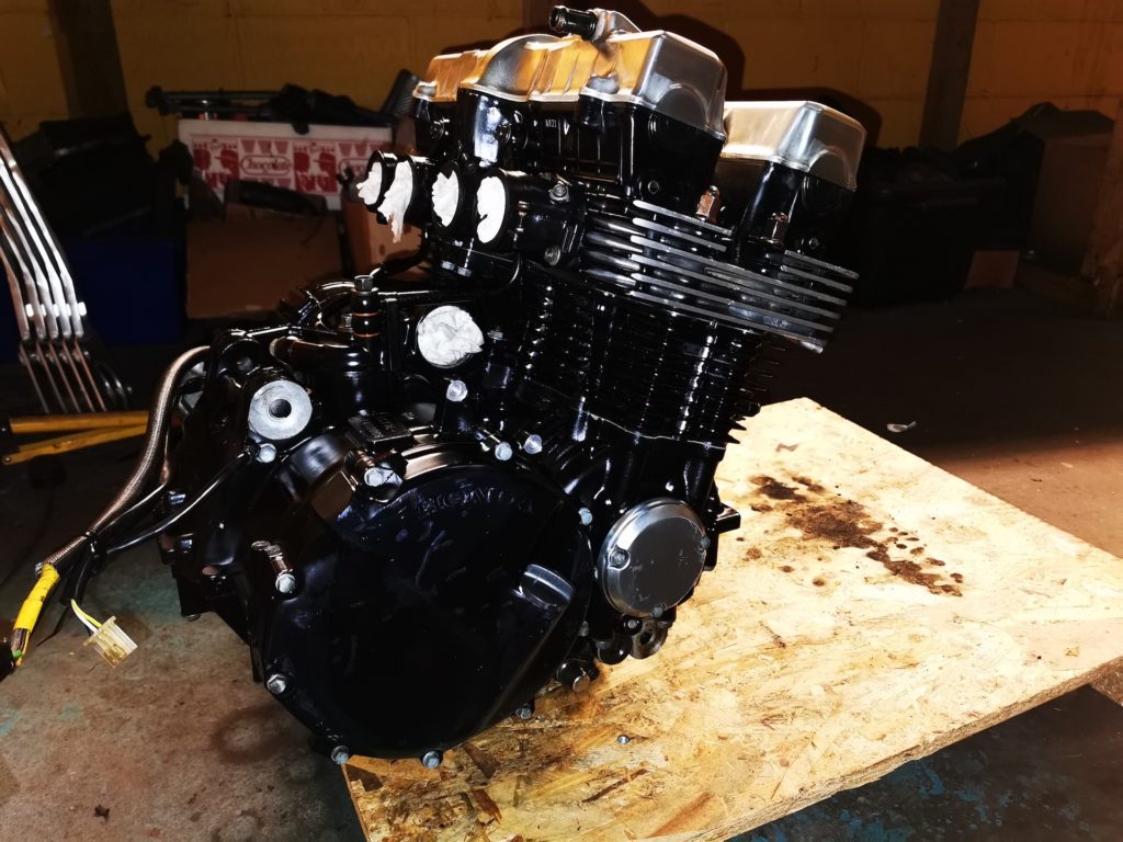 One of the hardest challenges was fitting the massive engine by himself without a hoist or even a stand at the time. That must have looked medieval. The engine came from Japan off a 2004 model CB750 with only 12,000 miles. This engine has a hydraulic clutch, which is something of a novelty on a CB750! The other hard challenge was getting the electrics working. Again, using unfamiliar parts doesn’t help with this. The list of parts used is pretty extensive: